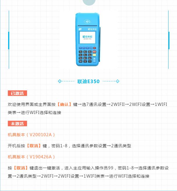 前面为大家介绍了各个厂商生产的不同型号的电签版POS机连接WIFI的操作流程,但除了电签版POS机外,传统POS机的用户数量也十分庞大,因此有很多使用传统POS机的朋友反映,很多时候也需要使用到WIFI功能,但又不知道如何连接,今天便来为大家讲解一下!