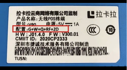 机器背面有机具介绍贴纸,帖子上有配置会写明机器是否支持WIFI网络,如下图所示:
