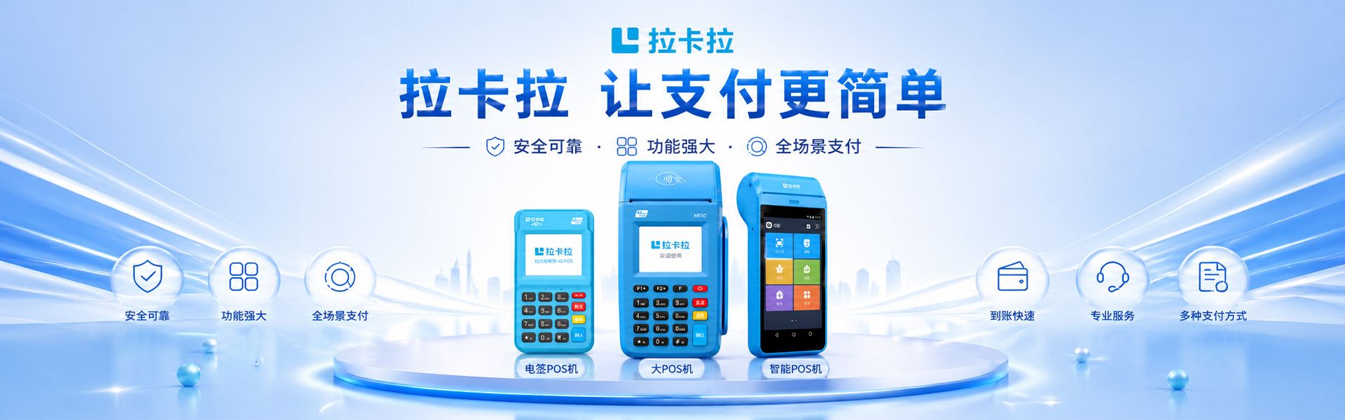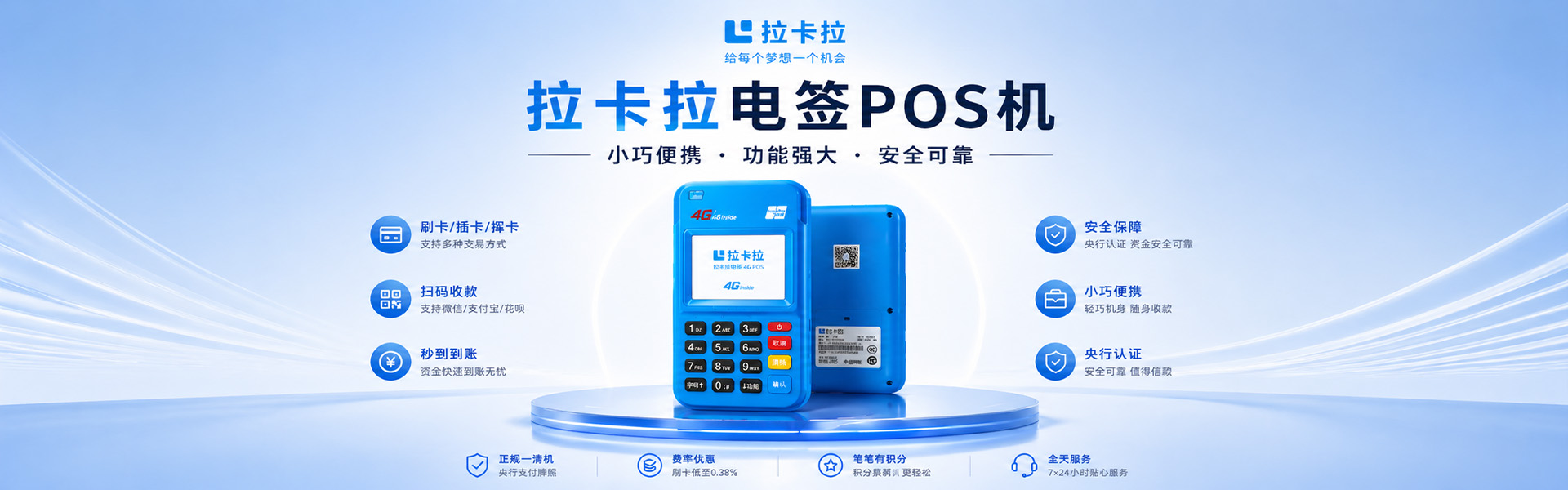 本平台提供拉卡拉4G电签POS机,大POS机及智能POS机,个人和商户均可办理,费率稳定不涨价,全国包邮。